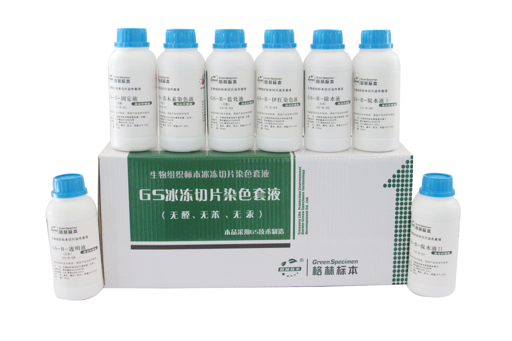 哈爾濱格林標(biāo)本技術(shù)開發(fā)有限公司為了免除甲醛、二甲苯、氧化汞等對于病理工作者身體及環(huán)境的危害,本著健康、環(huán)保、優(yōu)質(zhì)的原則,多年來一直致力于環(huán)保病理試劑的科研和開發(fā),經(jīng)不斷探索、嘗試和實(shí)踐應(yīng)用,***終研發(fā)出病理專用環(huán)保試劑“GS組織樣本制備及切片染色系列試劑”,該試劑不含甲醛、二甲苯、氧化汞等對人身和環(huán)境有極大危害的有毒化學(xué)試劑,其功效完全優(yōu)于目前大量使用的以甲醛、二甲苯為主的傳統(tǒng)病理試劑,是完全可以替代傳統(tǒng)有毒試劑并具有強(qiáng)烈革命色彩的全新環(huán)保試劑產(chǎn)品。